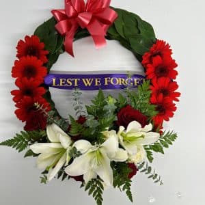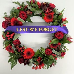 ANZAC Day is when we create the official ANZAC Day wreaths and commemoration wreaths for Military and Government Departments for the official ANZAC day wreath laying ceremony and other memorial services. The traditional techniques of the Anzac wreath is covered with long- lasting fresh glossy green leaves in red and green, the RSA Red Poppy green symbolic wreath can then be highlighted with ribbon,