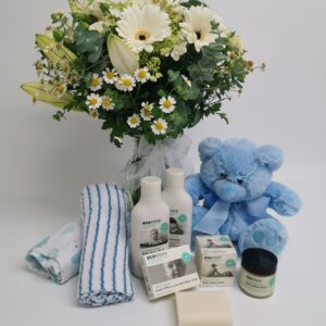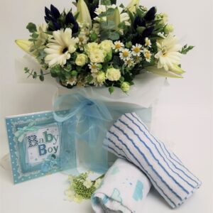 Gift Hamper & Baby Boy Bouquet in Vase