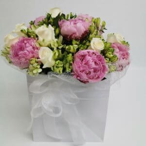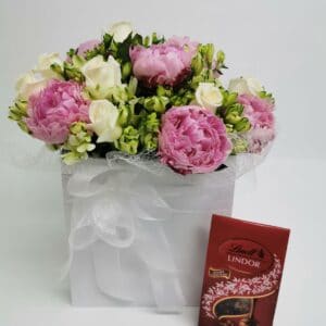 5 STEMS PEONIES & 10 STEMS ROSES with CHOCOLATES