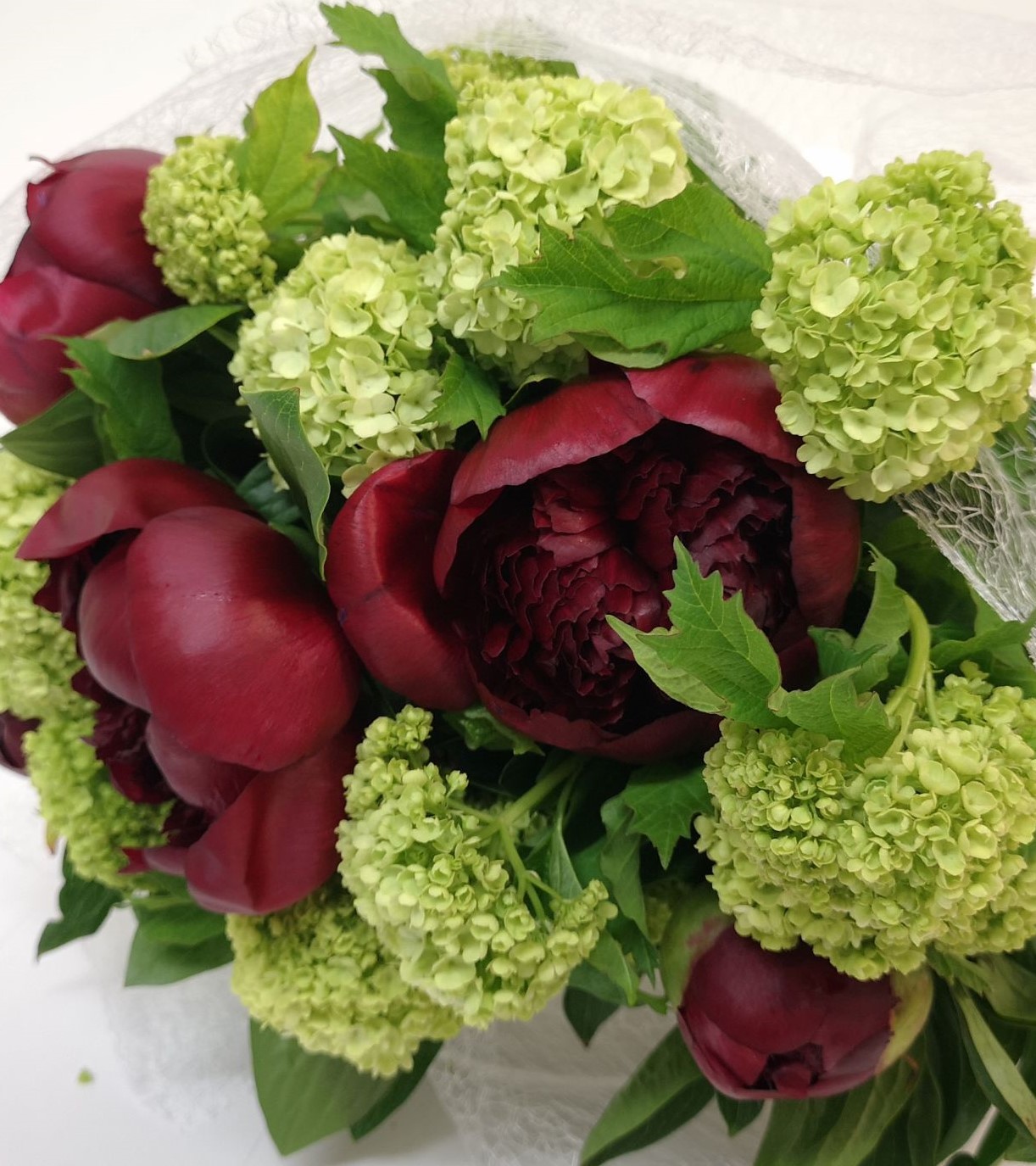 The pink Peonies in a bouquet arranged with greenery and  wrapped in white paper with a wet wrap to keep flowers fresh on delivery,the Peony are grown in the South Island of New Zealand only ,with it’s gorgeous lush bloom and delicate scent, so very special and an absolute favourite flower to many due to their short season.