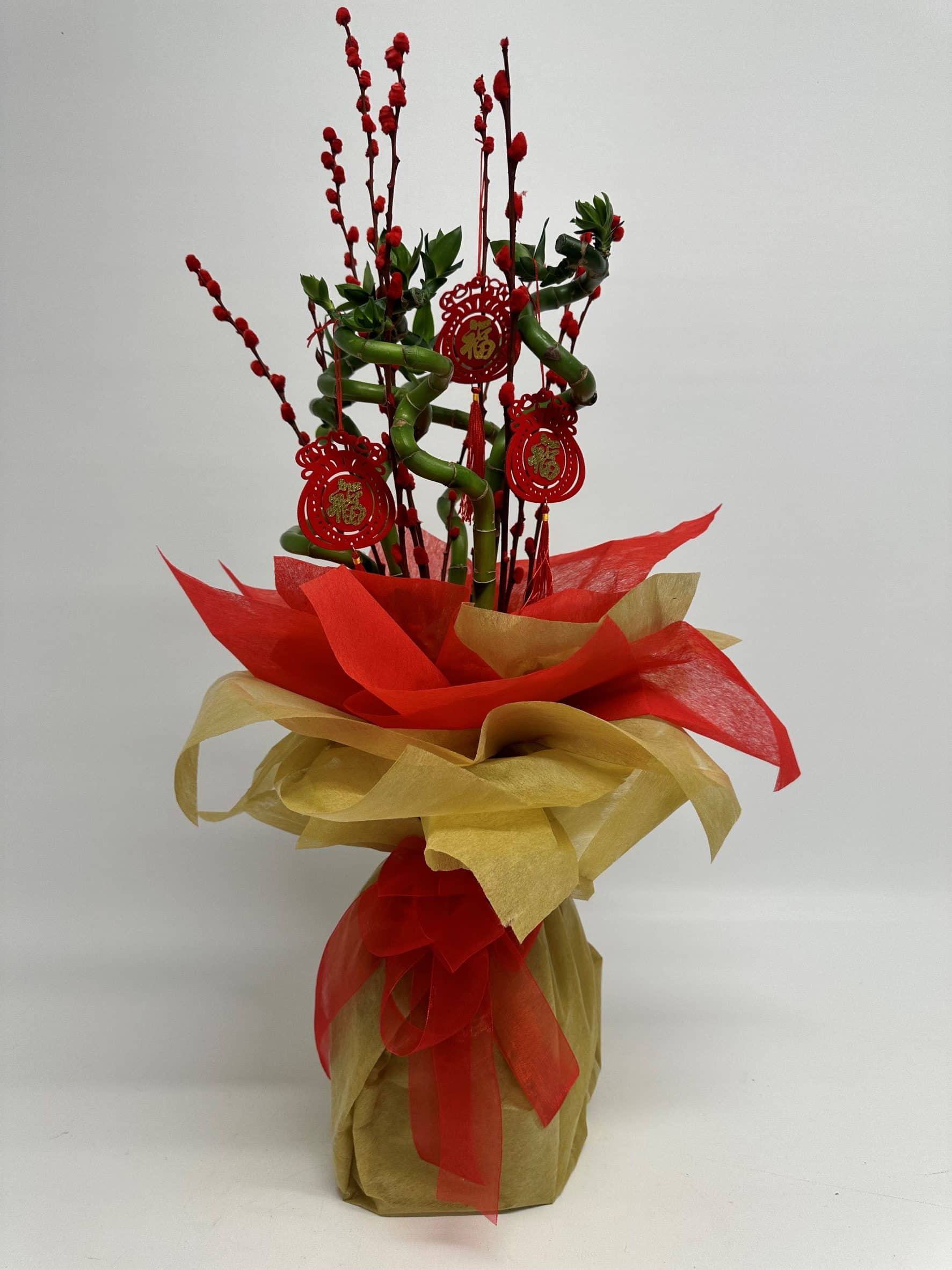 A popular choice for Chinese New Year, this Lucky Bamboo Bouquet is designed by our florist using fresh, long-lasting bamboo. Each bouquet is delivered with a wet wrap to help keep the stems fresh, making it a meaningful and thoughtful gift for welcoming good fortune and prosperity.
