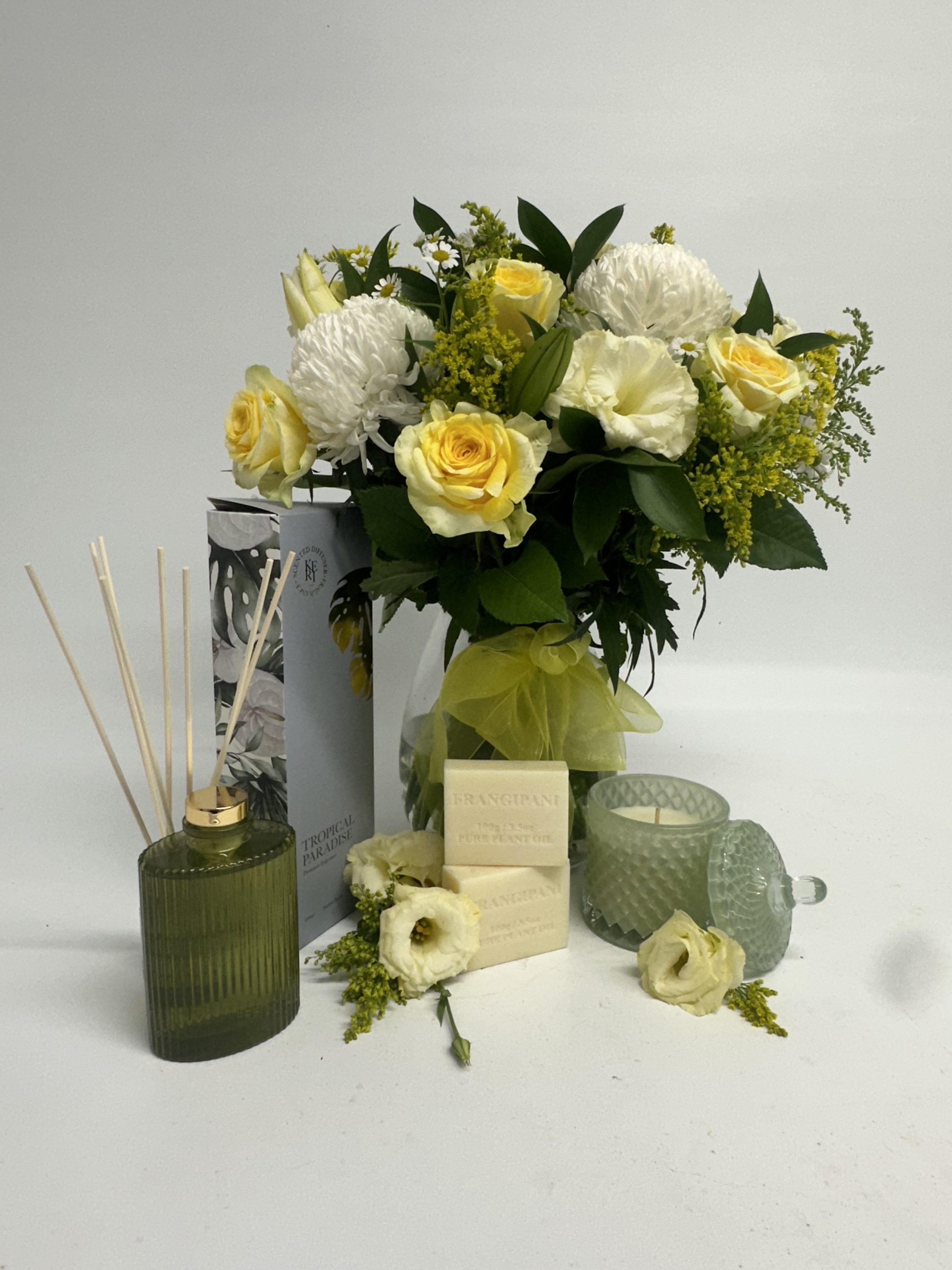 Bouquet & Candle Tropical /Oil Infusion Pamper Hamper Vase