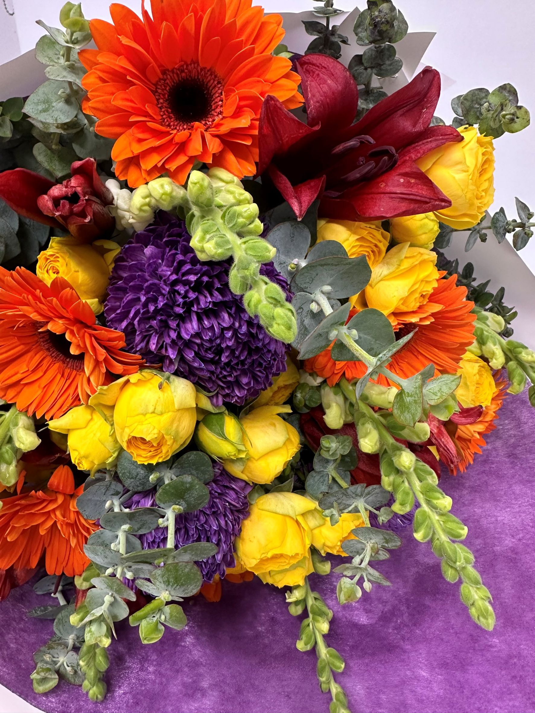 Flower varieties may vary depending on seasonal availability, but the bright, vibrant colour palette will always be maintained.