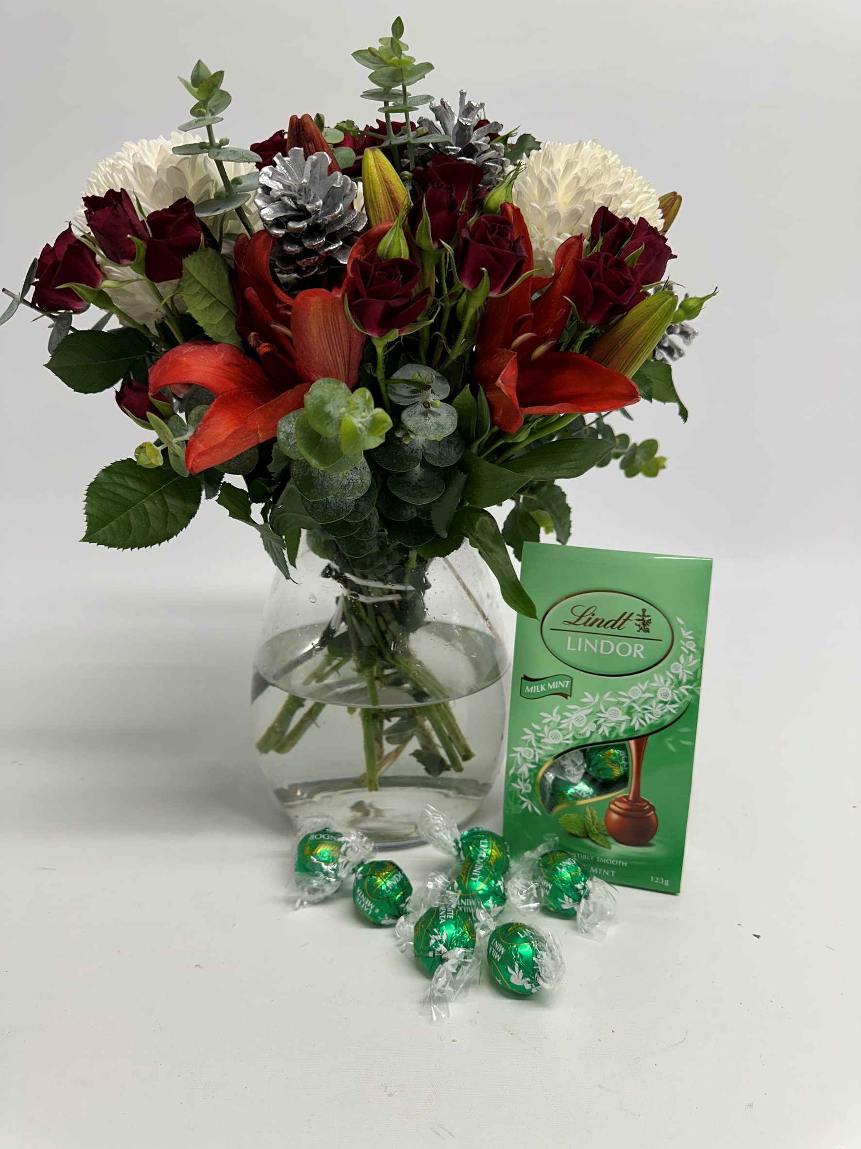 Presented in a glass vase and paired with delicious Lindor Mint Chocolates, this gift is perfect for family, friends, clients, or anyone who deserves a thoughtful seasonal treat.