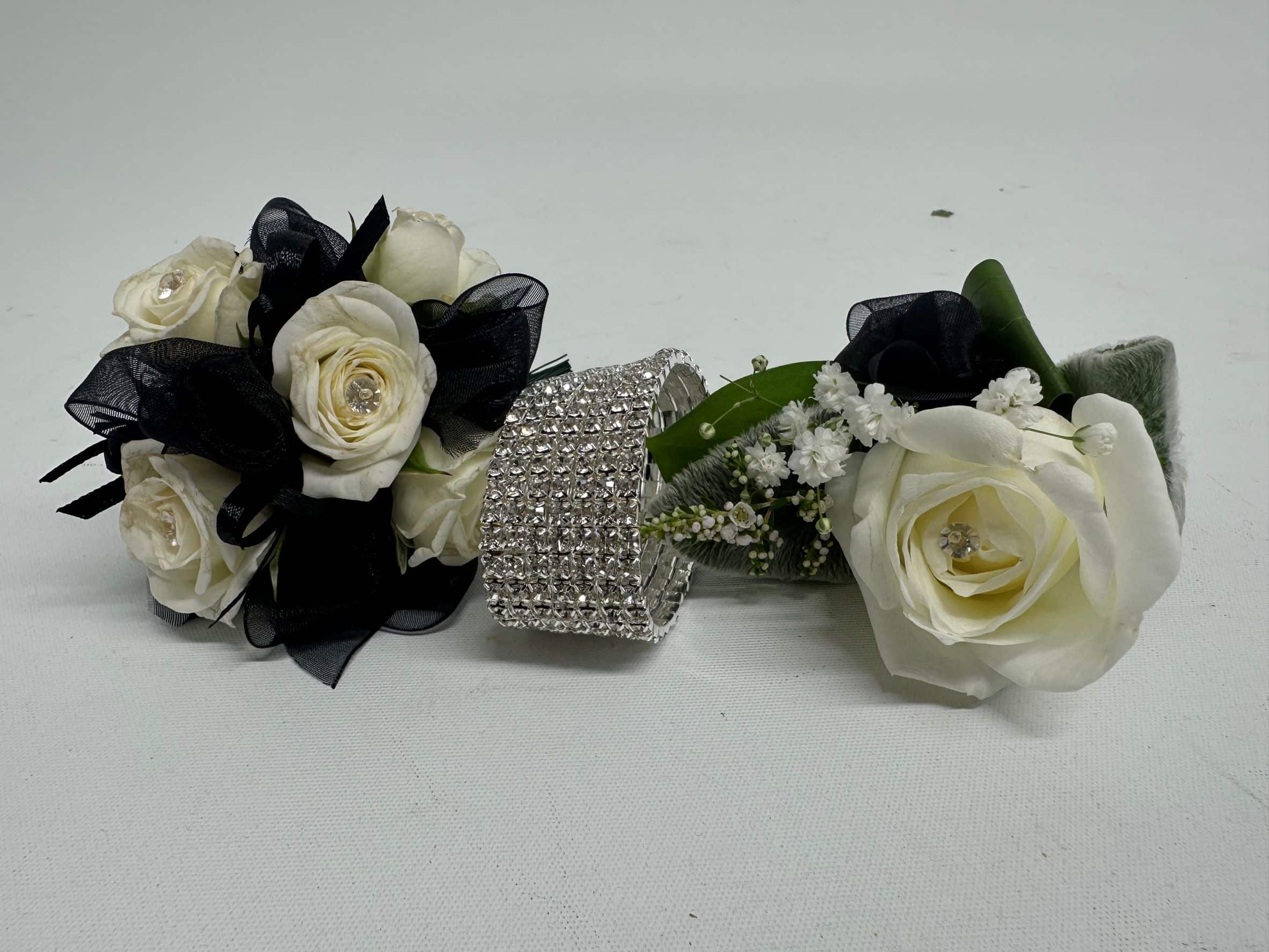 eCorsage Ball Combo PURE WHITE/BLACK Diamond Pick-Up Only