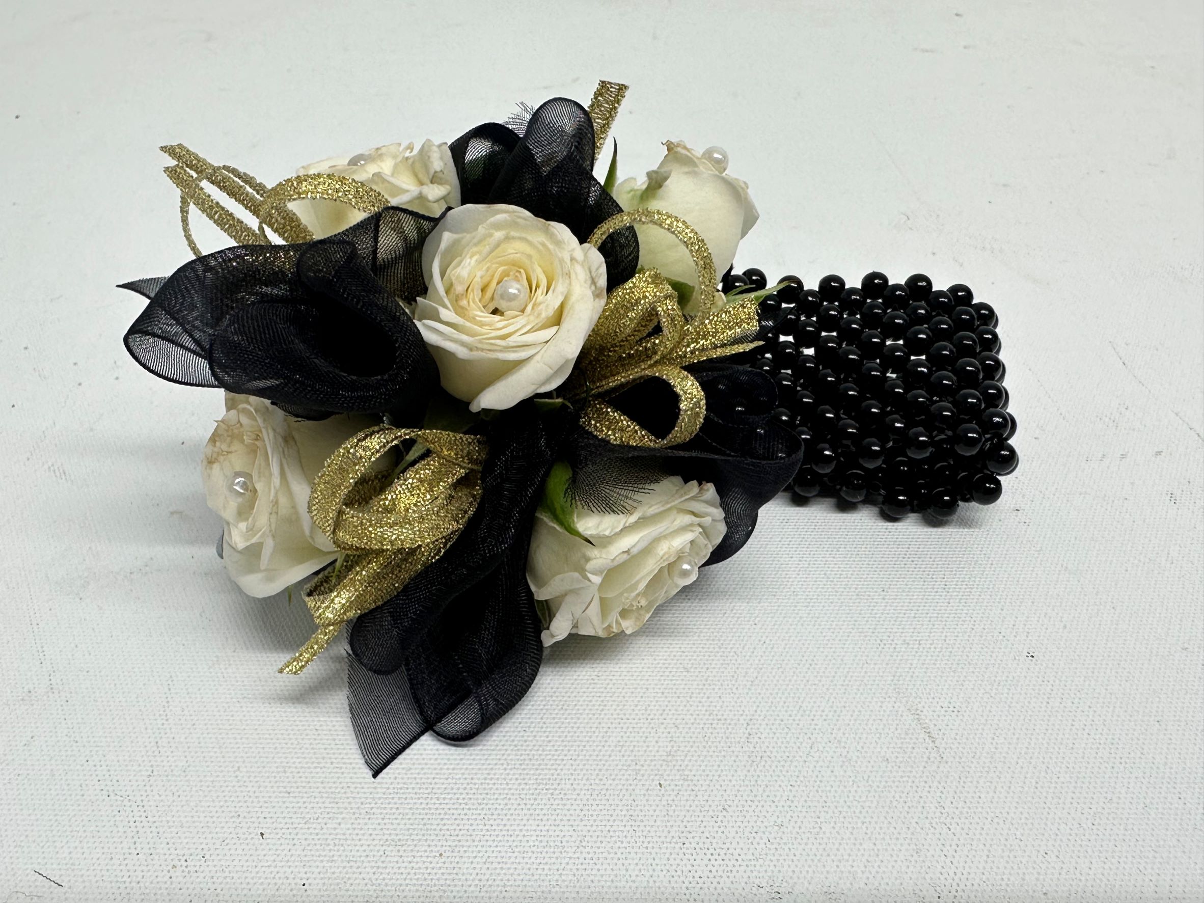 eCorsage Ball PURE WHITE/ BLACK GOLD Pick-Up Only