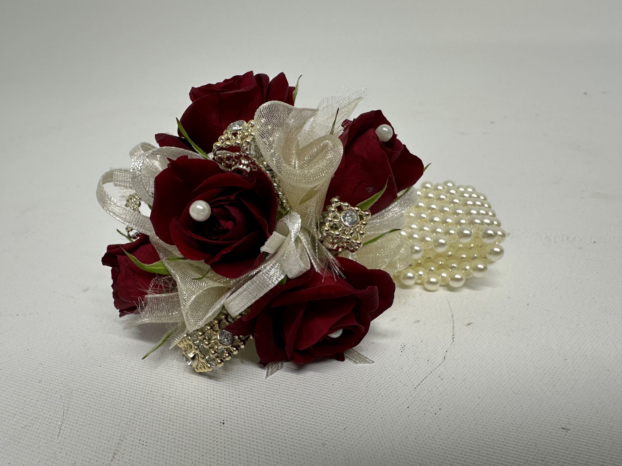 f6Corsage Ball PURE BURGUNDY /CREAM BLING