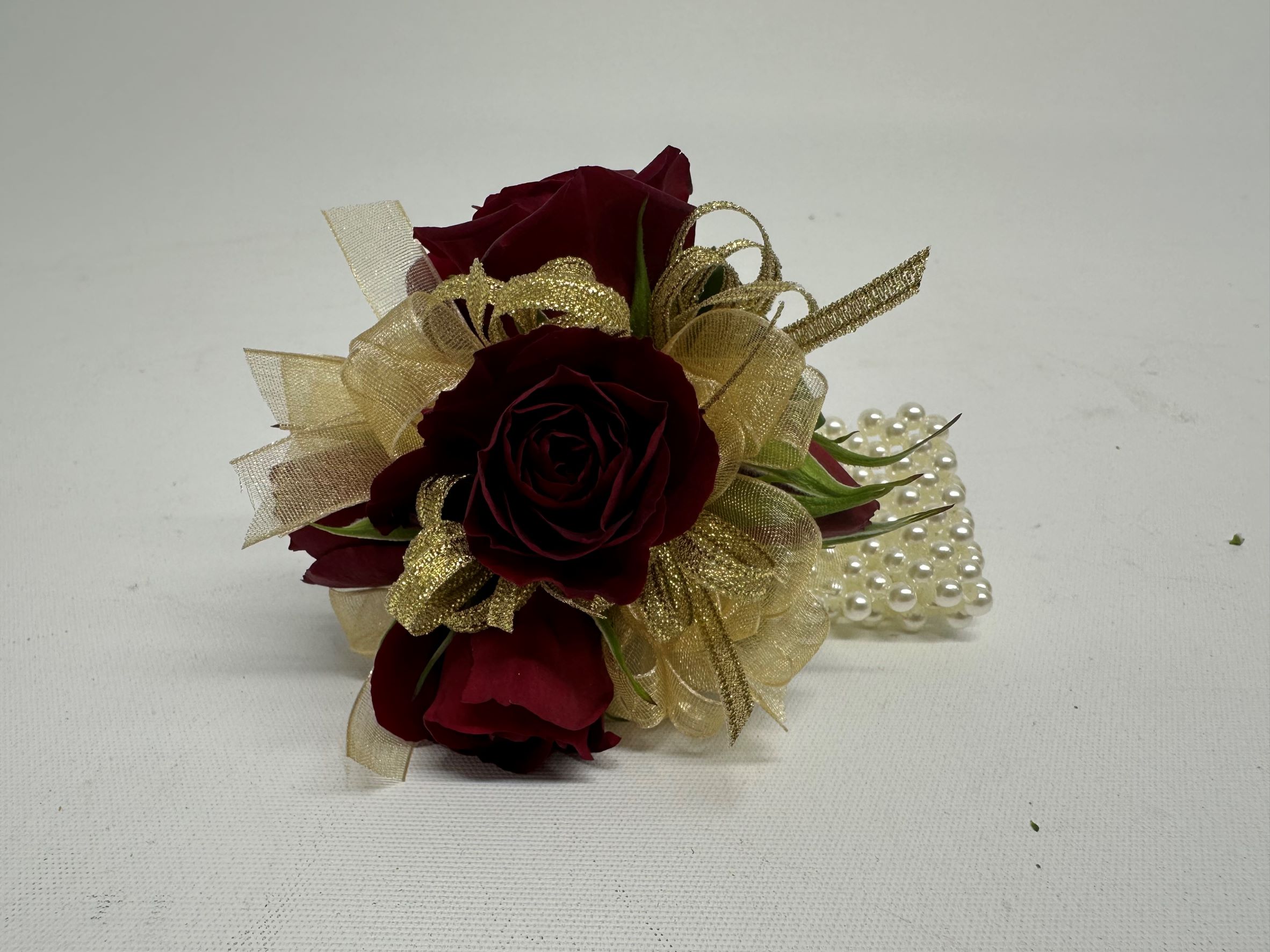 fCorsage Ball PURE BURGUNDY /GOLD Pick-Up Only