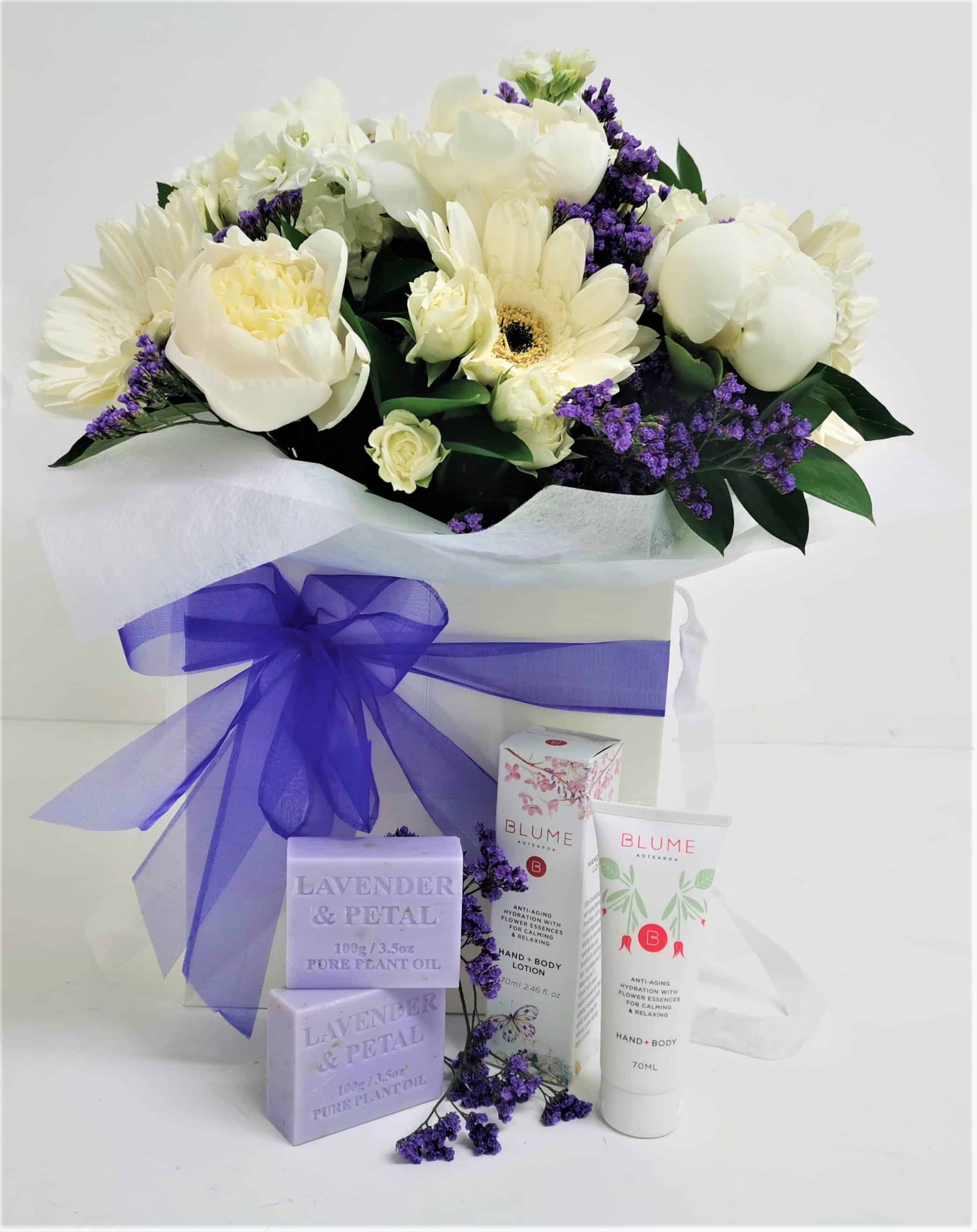 Send a soothing and elegant gift with our Calming Beauty Gift Set, featuring a soft-toned mixed bouquet of assorted fresh seasonal flowers. Designed in calming, beauty-inspired colours, this bouquet is professionally arranged and delivered in a stylish white carry bag.