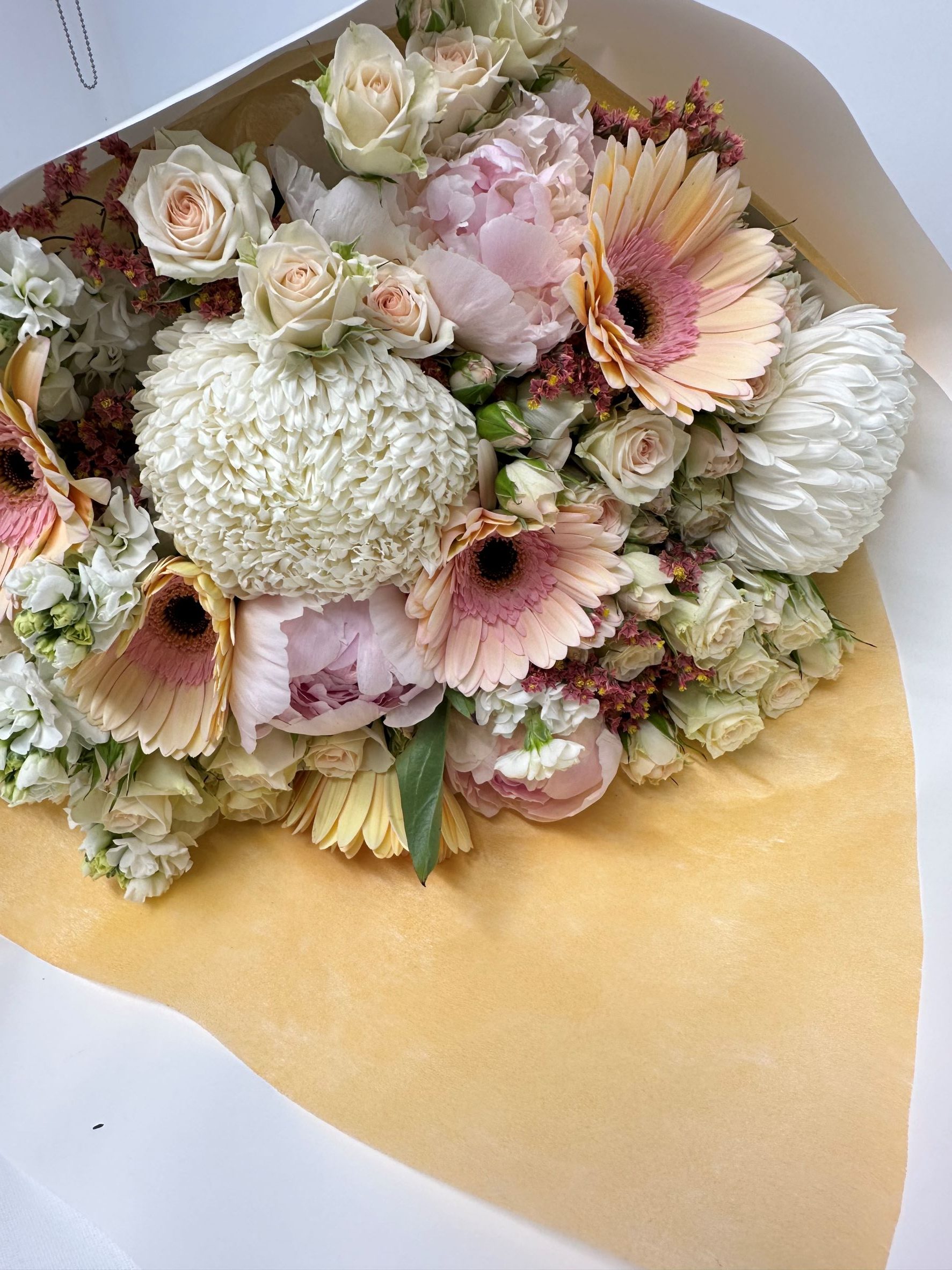 Elegantly wrapped in white paper by our designer florist