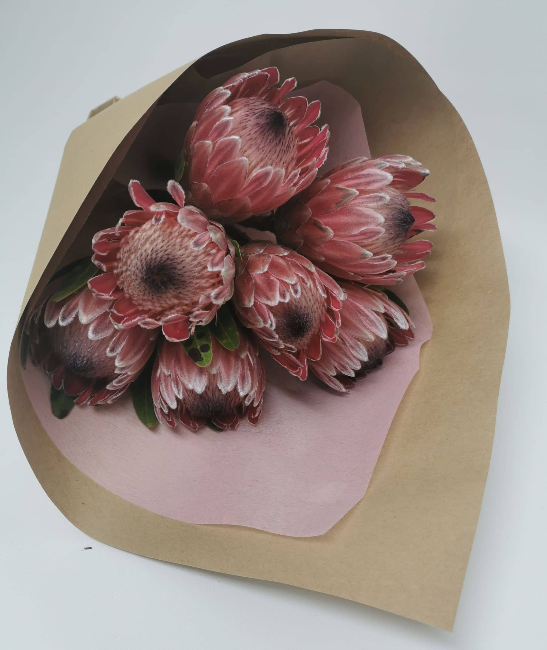 Protea’s From The Market ,arranged in a posy presentation style and wrapped by our professional designer