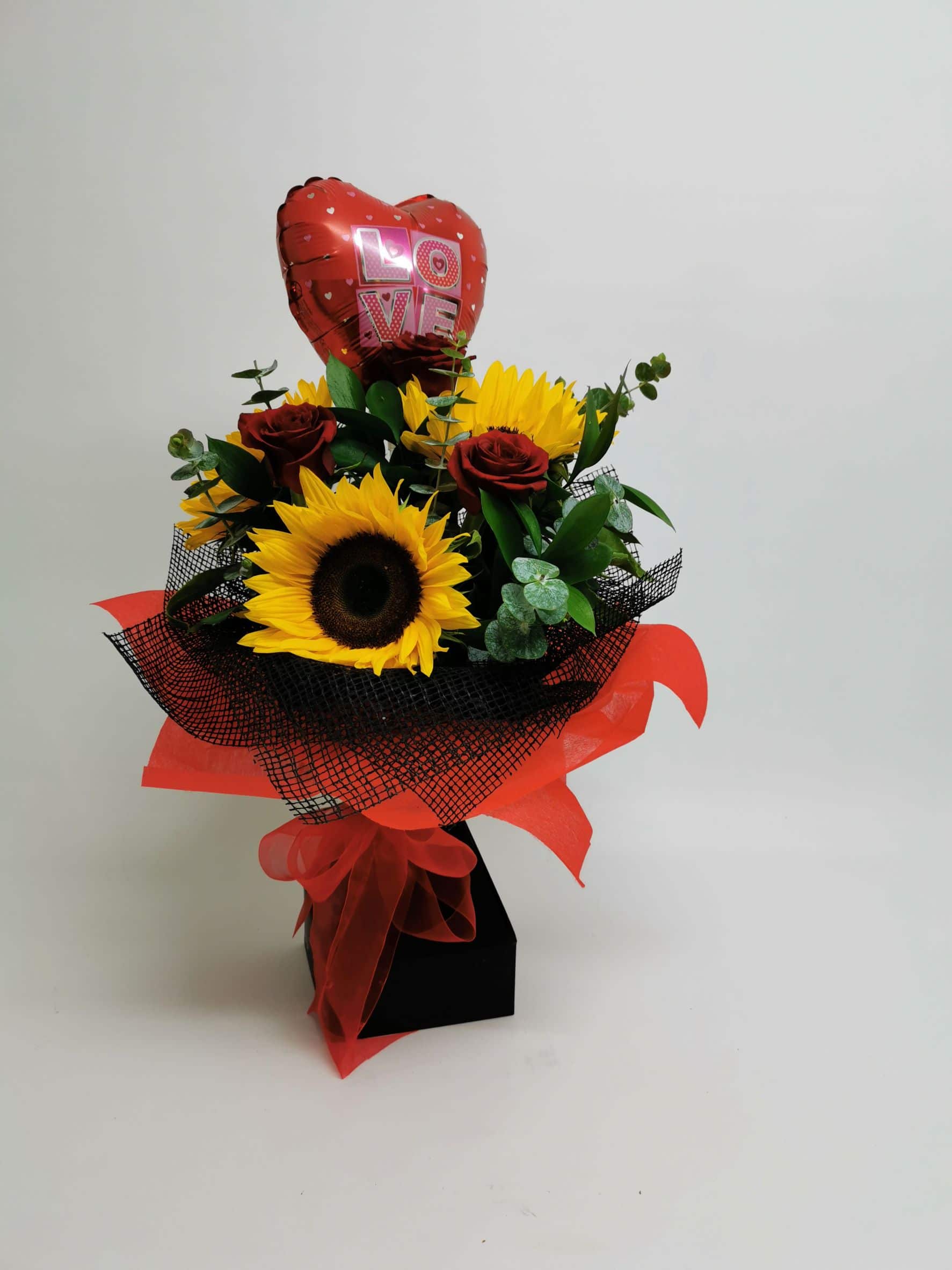 Valentine’s Combo Sunflowers/Red Roses/Balloon