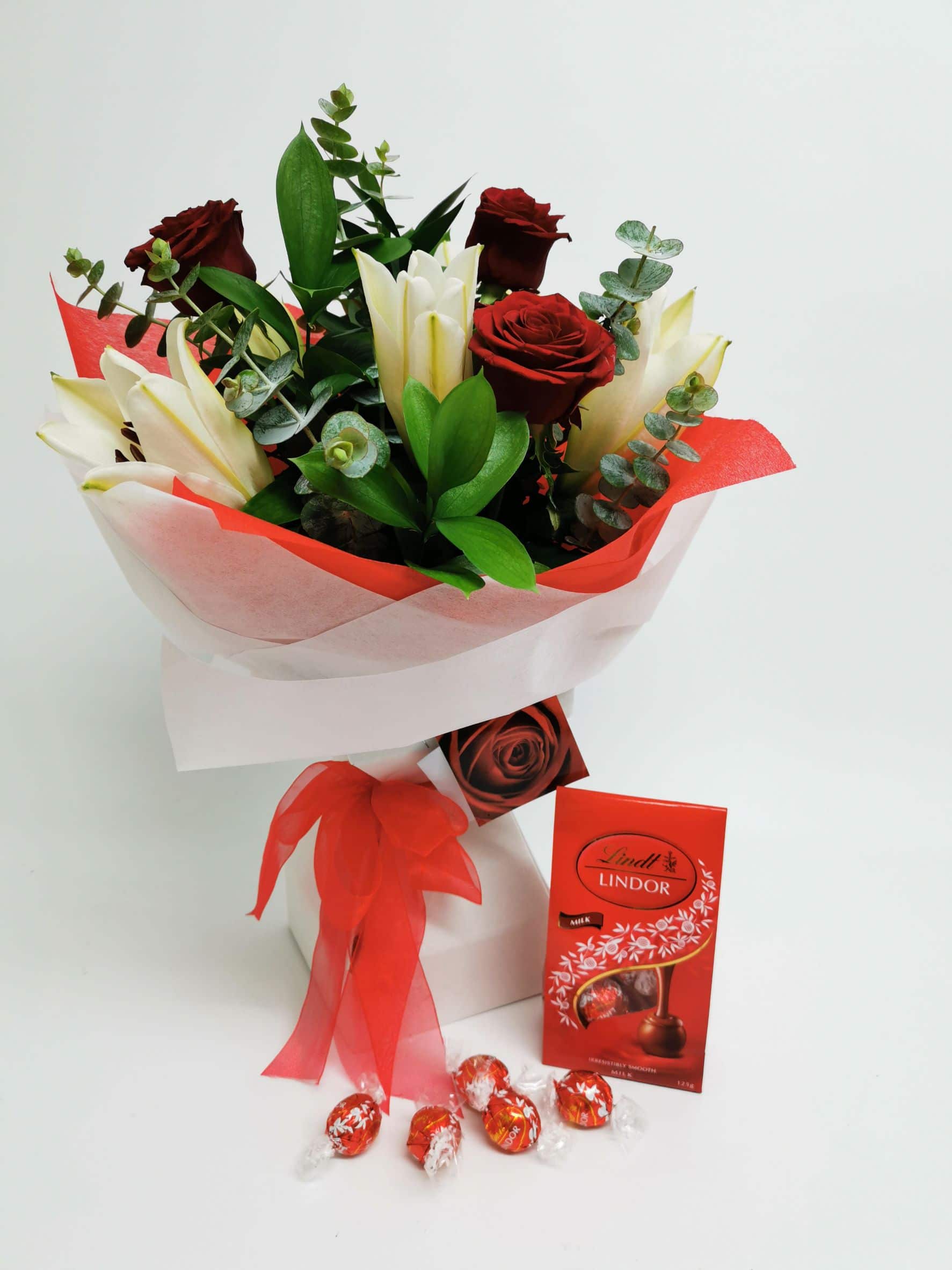 Valentine’s Combo White Lilies/ Red Roses Chocolates