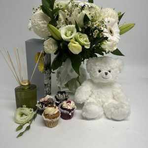 Welcome a precious new arrival with this elegant New Baby Bouquet, featuring a fresh selection of white seasonal blooms. Beautifully arranged in a soft posy style, this bouquet includes White Stock, White Lilies, and Gerberas — all delivered in bud to ensure extra freshness and longer-lasting enjoyment.